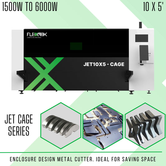 2000W to 6000W Fully Enclosed FlexMax Fiber Laser Metal Cutter JET CAGE Series 10x5' Workingarea