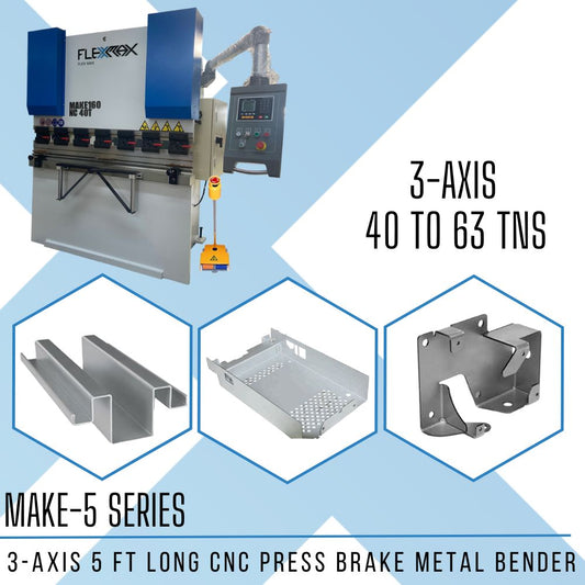 40tns to 63tns, 5ft long FlexMax CNC 3-AXIS MAKE-5 Series Hydraulic Press Brake Metal Bender