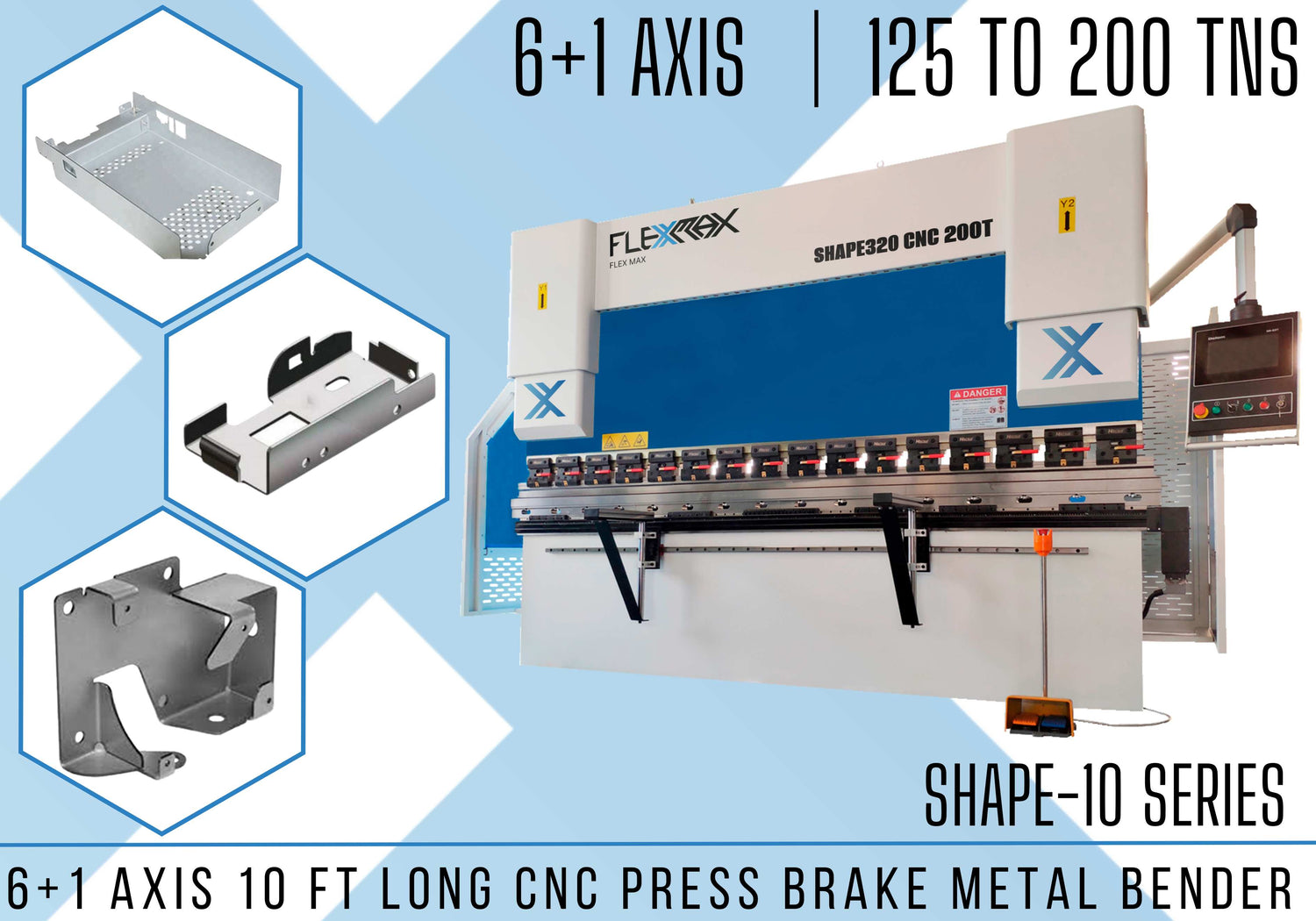 125tns to 200tns, 10ft long FlexMax CNC 6+1 AXIS SHAPE-10 Series Hydraulic Press Brake Metal Bender