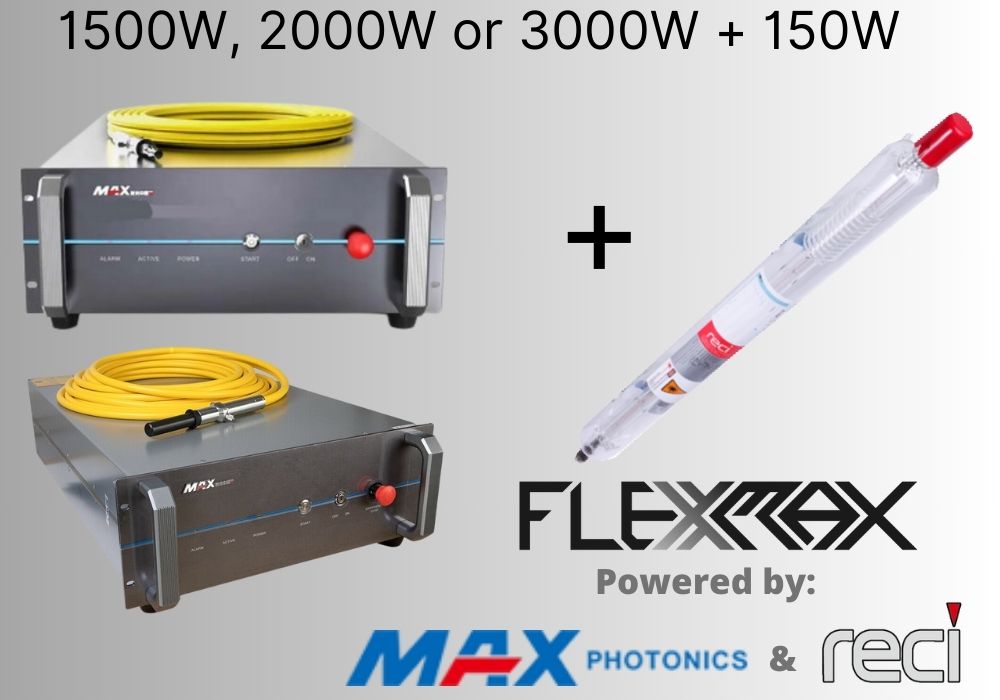 ✔ 1500W, 2000W, or 3000W Fiber Laser Source + 150W CO2 RECI W8 Tube