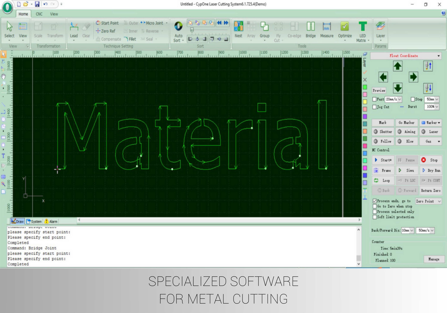 FlexMax Laser includes an industrial-grade DSP hand controller to operate the metal cutter efficiently from a safe distance.