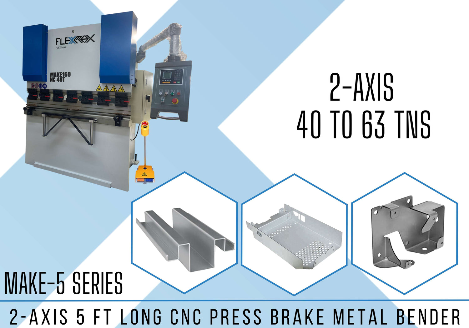40tns to 63tns, 5ft long FlexMax CNC 3-AXIS MAKE-5 Series Hydraulic Press Brake Metal Bender