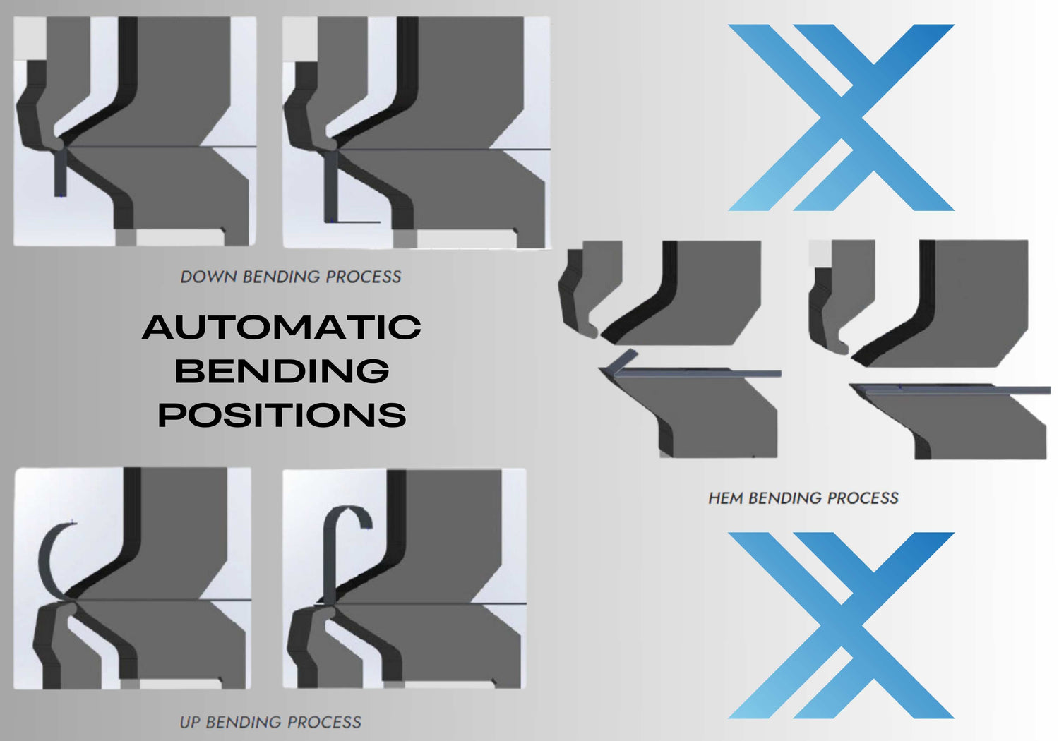 The PANEL Series can perform down, hem, up, and more automatic bending positions.